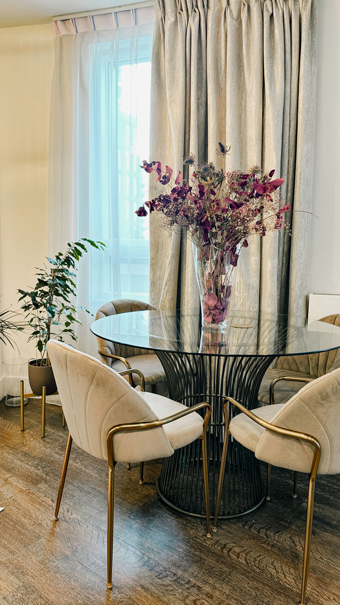 This newly built apartment in Wembley has been given a chic Art Deco-inspired makeover with a focus on neutral and feminine colours and textures. The sophisticated yet cosy space exudes elegance and class, with stylish touches like plush velvet cushions and luxurious drapes. Each room has been carefully curated with a mix of vintage and modern elements to create an alluring atmosphere that perfectly blends sophistication and comfort. The end result is a stunning space that epitomizes contemporary elegance, perfect for those looking for a stylish yet comfortable retreat.